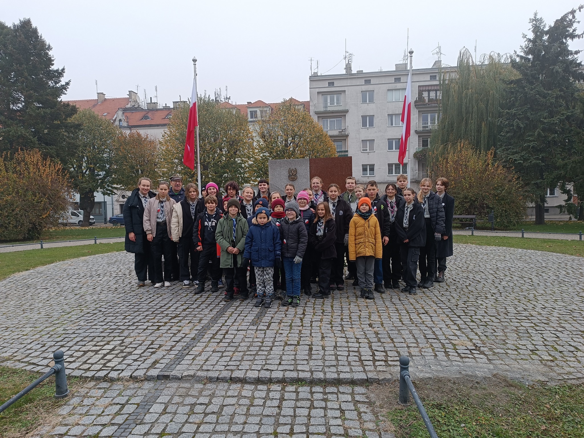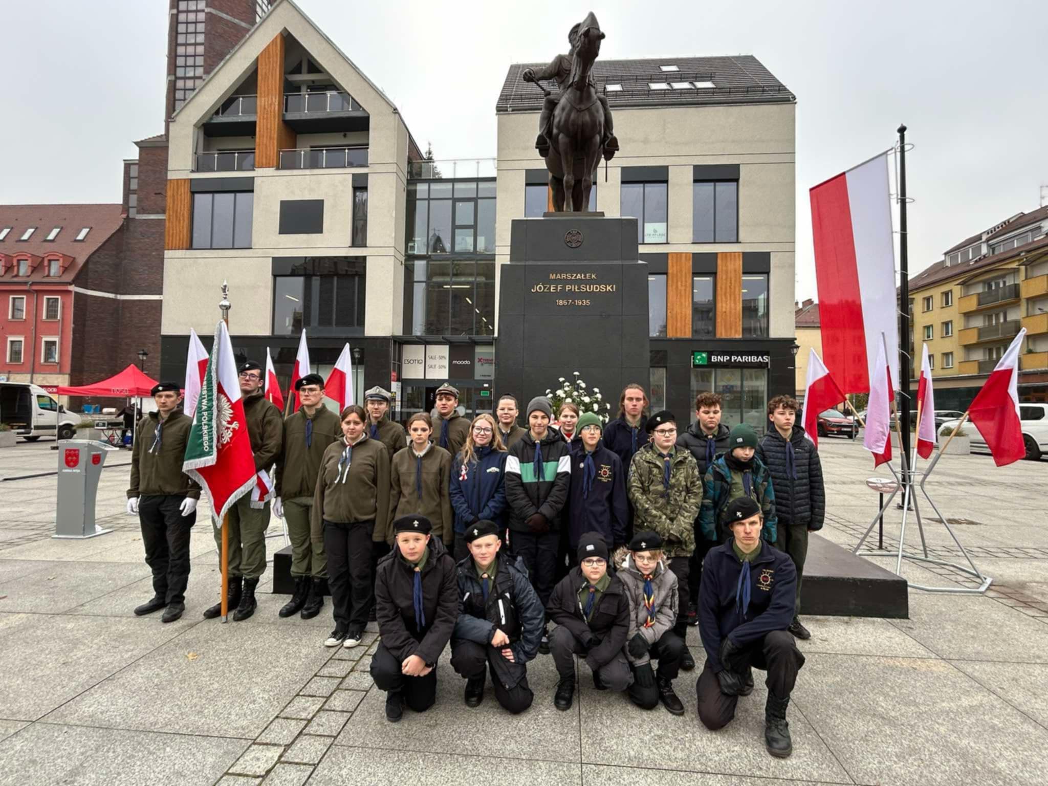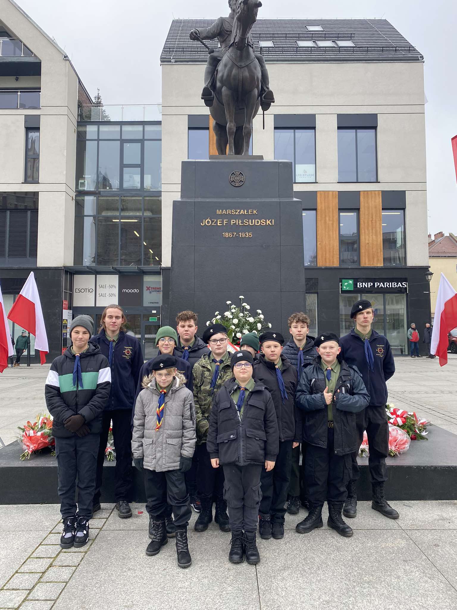 ➡️ Nyskie drużyny uczestniczyły w obchodach Święta Niepodległości pod pomnikiem Józefa Piłsudskiego na rynku. Harcerze wystawili poczet sztandarowy oraz złożyli wieniec.